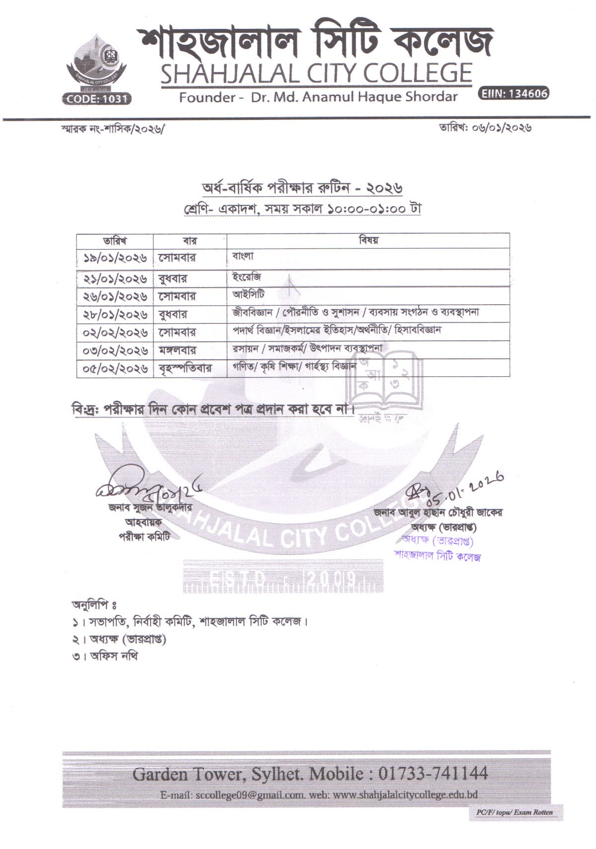 নির্বাচনী পরীক্ষার রুটিন ২০২৬ দ্বাদশ শ্রেণি 2024-2025 শিক্ষাবর্ষ